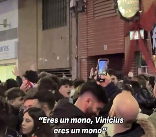 部分阿尔瓦塞特球迷在球场附近高唱辱骂维尼修斯的歌:“维尼修斯,你是猴子。”