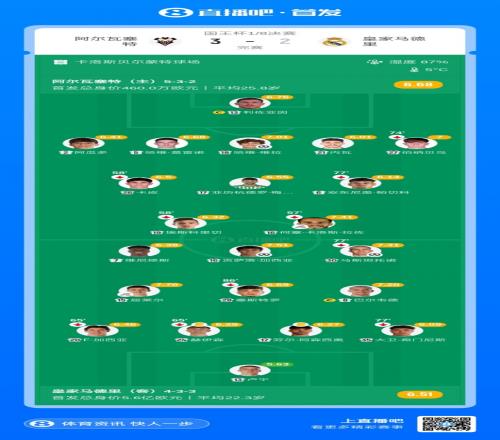 双方球员的首发身价对比,阿尔瓦塞特的首发身价仅460万欧元,而皇马5.6亿欧元的首发身价是对手的121倍!